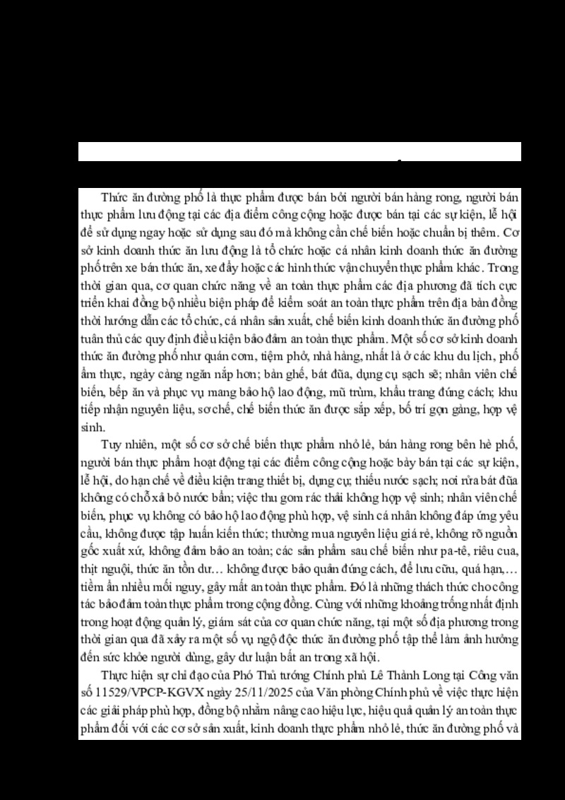 | Tiêu đề văn bản | bảo đảm an toàn thực phẩm trong kinh doanh thức ăn đường phố | ||